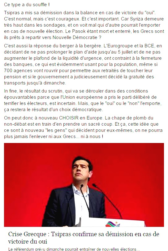 2) La longueur des négociations est « l’investissement» des grecs qui disposent encore de liquidités et le drame de ceux qui n’ont rien, ou se trouvent au creux des échanges économiques réels : disparition de tout délai de paiement, de l’investissement, chute de la consommation, etc.